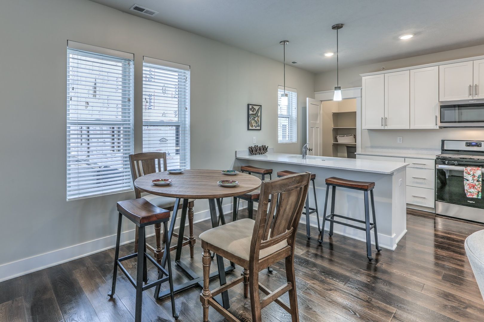 Welcome to Bungalows on the Lake, a premier living destination in Omaha, NE. This one-bedroom, one-bathroom apartment offers a unique blend of comfort and style. The apartment features a private entrance, leading into a spacious interior with large windows that fill the space with natural light. The kitchen is a chef's dream, equipped with stainless steel appliances, a gas stove, a refrigerator, a microwave, a dishwasher, and a kitchen island.