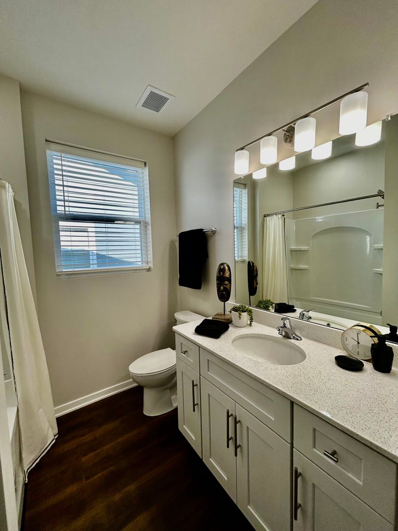 Your bathroom, a stylish oasis, exudes luxury with modern fixtures and a spa-like ambiance, providing the perfect place to pamper yourself and prepare for each day.